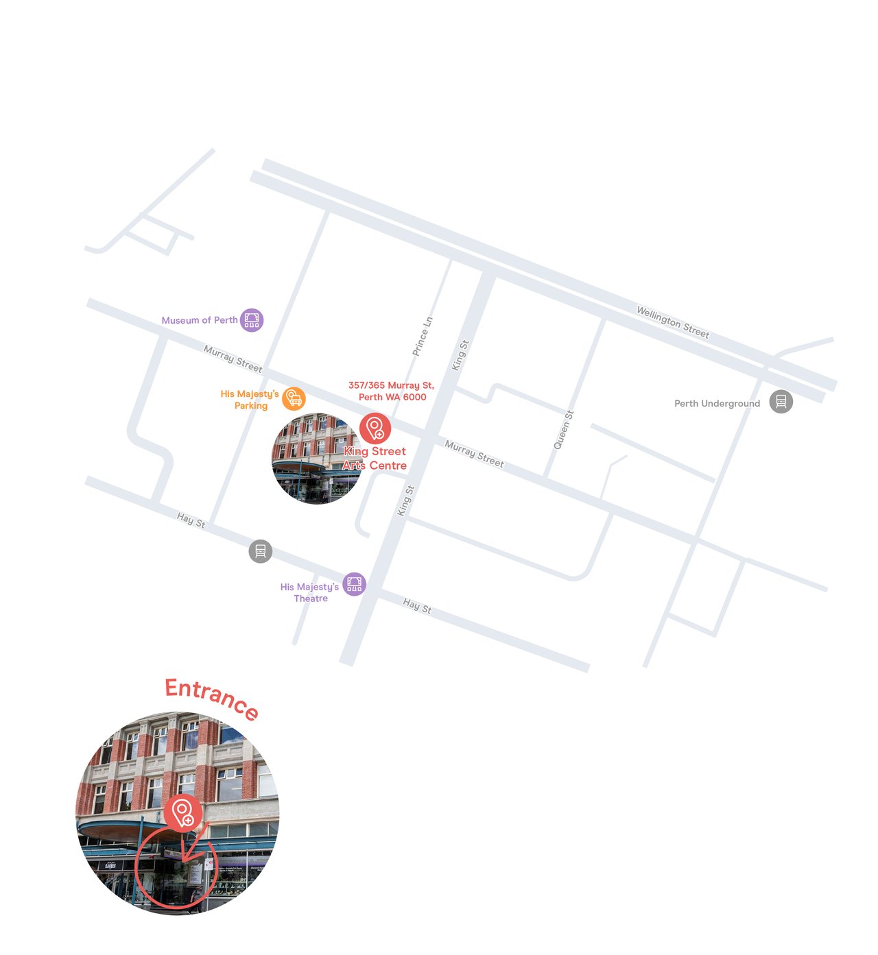 King Street Arts Centre (KSAC) is located at 357/365 Murray Street, Perth