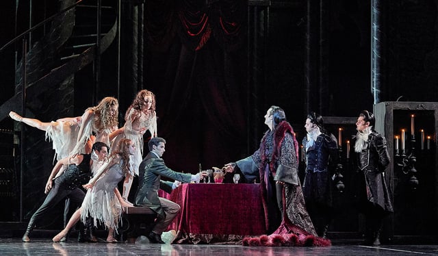 Concerned by Lucy's pallor and sudden frailty, Mrs Westenra turns to Dr Seward and Professor Van Helsing, who discovers a bite mark on Lucy's neck. As the unsuspecting guests continue to celebrate, Mina notices the handsome stranger in their midst — and the Count, in turn, recognises her as the young woman from Jonathan's portrait. A powerful, unsettling fascination takes hold between them.